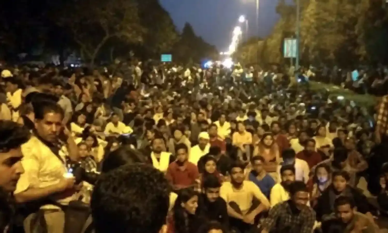 The students are staging a sti in protest at INA, demanding release of the detained students. The march was in response to the open call by the JNU Students Union and Teachers Association to protest against the removal of deans and chairpersons from the Centres ; and the ongoing sexual harassment case where the accused Professor was arrested and released immediately on bail. The girls who have been harassed by him held a press conference in Delhi recently, and made it clear to the media that Johri was a serial offender. They also said that unlike the propaganda by some of his supporters in the BJP, they were not from the Left students organisations but actually most of them were registered members of the ABVP.