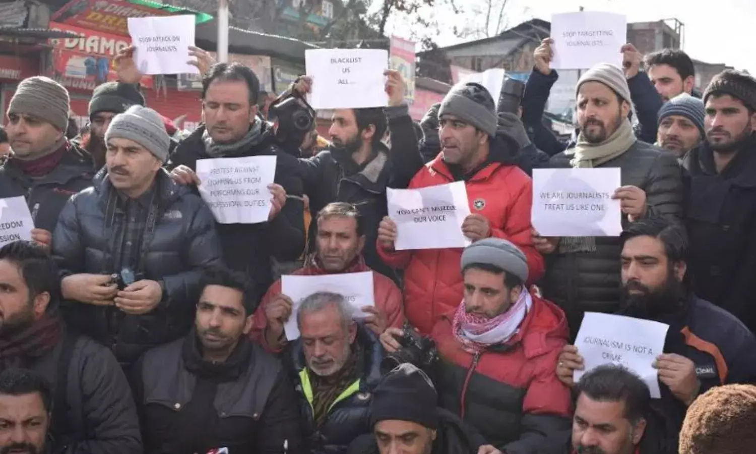 Journalists protest at being denied entry to Republic Day parade in Srinagar