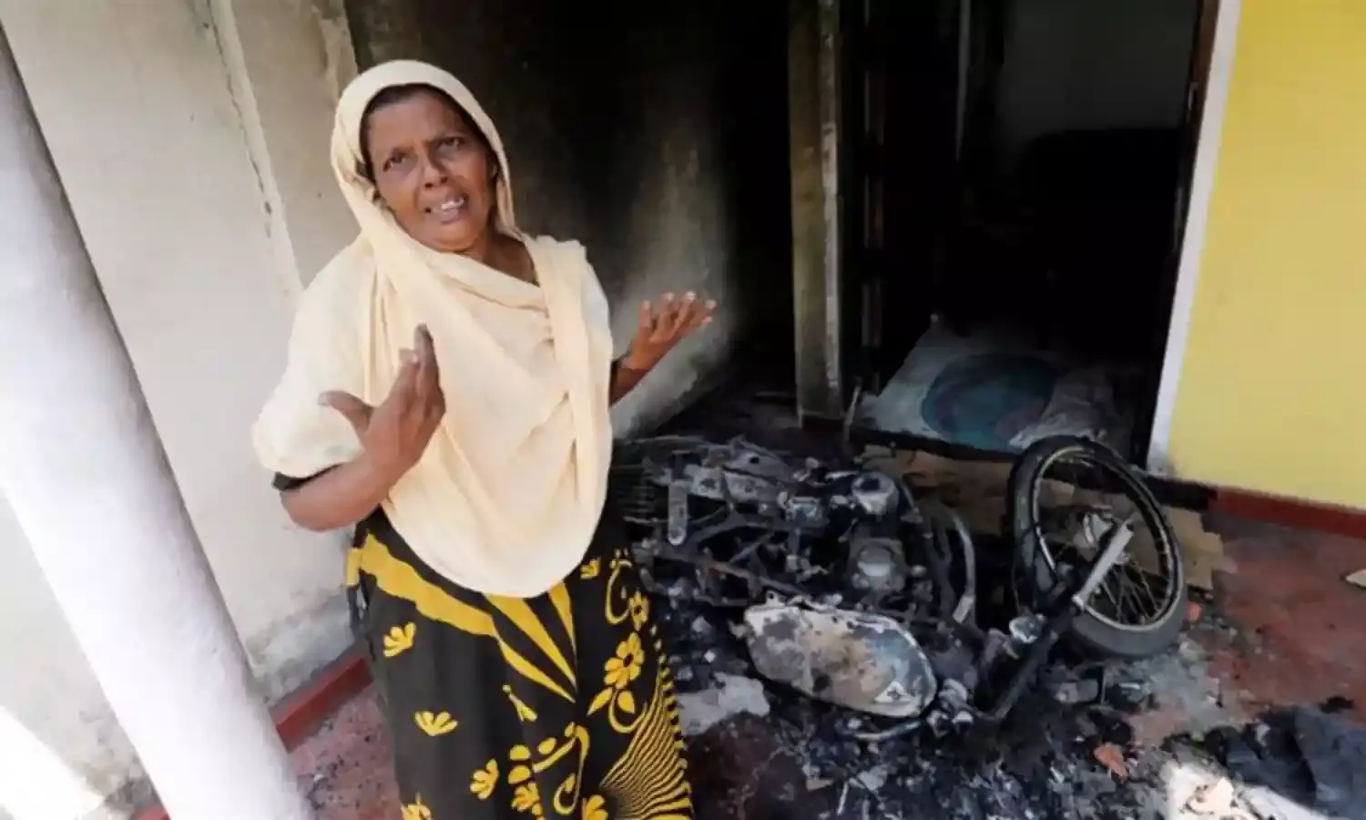 Cover Photograph: A Muslim woman reacts next to a burned motorbike and her house after a mob attack in Kottampitiya, Sri Lanka in May - Dinuka Liyanawatte/Reuters