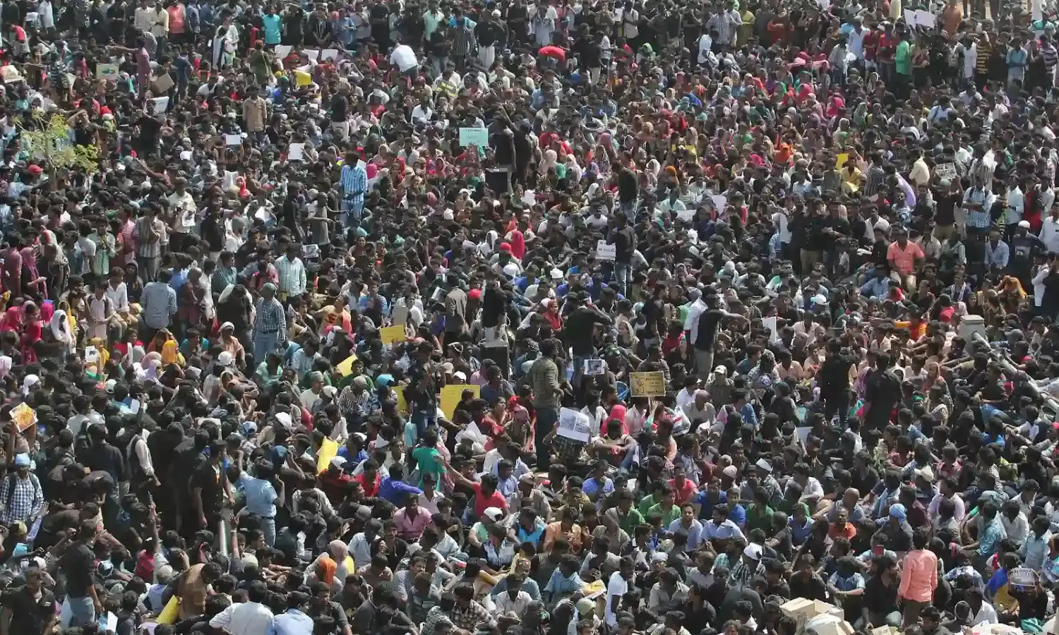 The movement started with hundreds of protestors collecting at the Marina Beach in Chennai to demand revocation of the legal ban on jalikattu. Gradually, the movement spread across other parts of the state, with thousands of protestors gathering in all prominent parts of the state. It culminated in the Tamil Nadu Vidhan Sabha passing a law to legalize the practice.