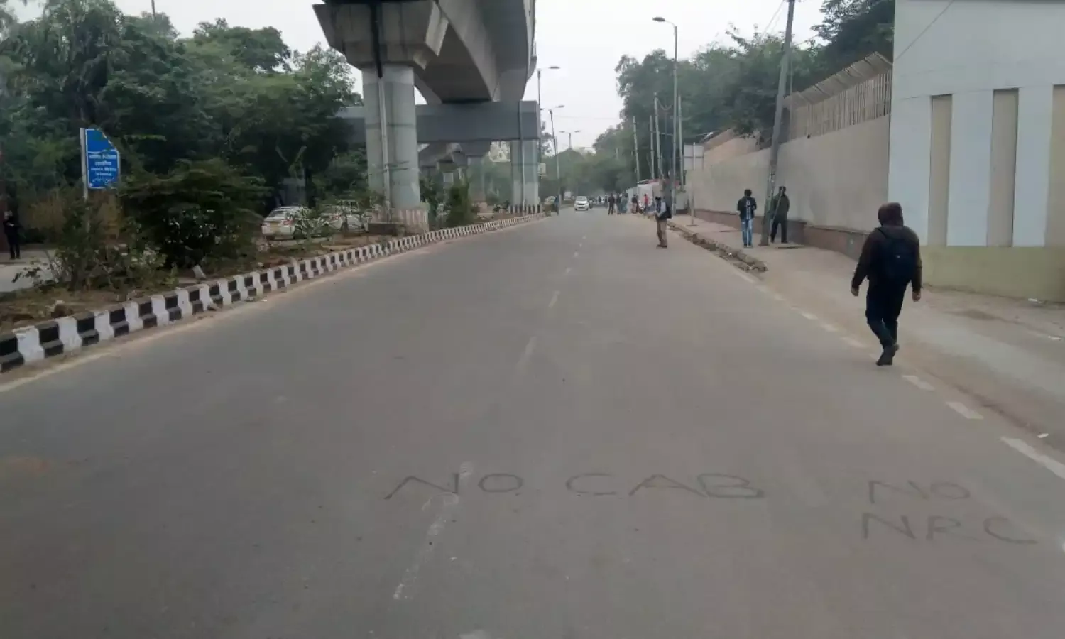 People weren’t running here, or raising slogans or marching in large crowds- but you could see the vestiges of the violence that had wreaked the campus the preceding days. Graffiti and spray-painted slogans on the walls decrying the government, the Act, the police and the death of our democracy were on every turn, and students and teachers roamed the grounds quietly- not in large numbers, but in close-knit groups.