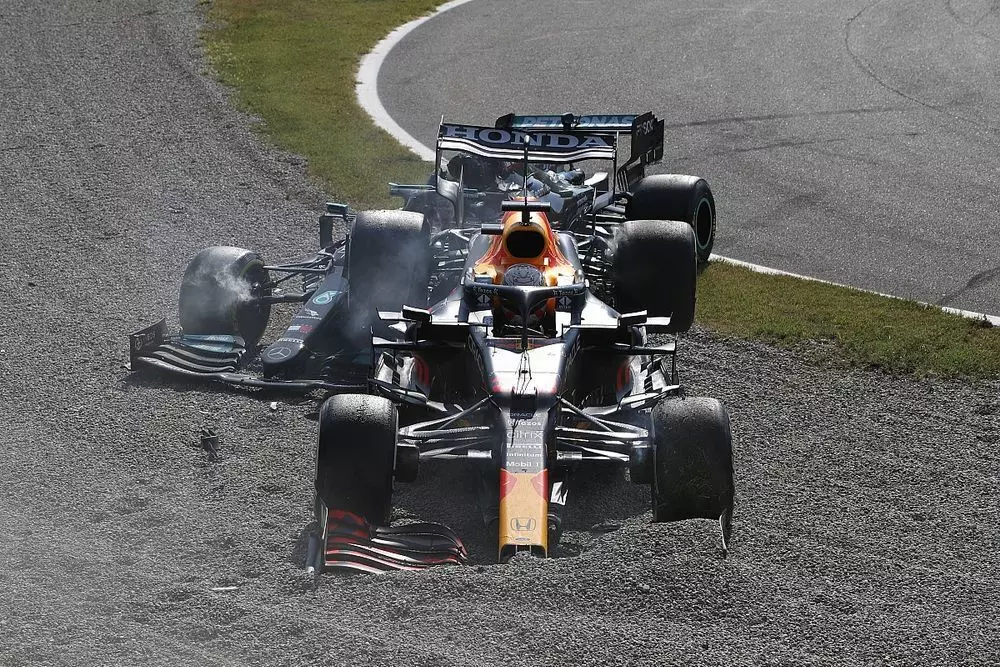 A close call. A narrow shave. The escalating tensions between the frontrunners this season reached a crescendo moment when the cars literally found themselves in the gravel pit, piled atop each other, taking both, Lewis Hamilton and Max Verstappen, out of the contention for the remaining length of Sunday’s Italian Grand Prix.