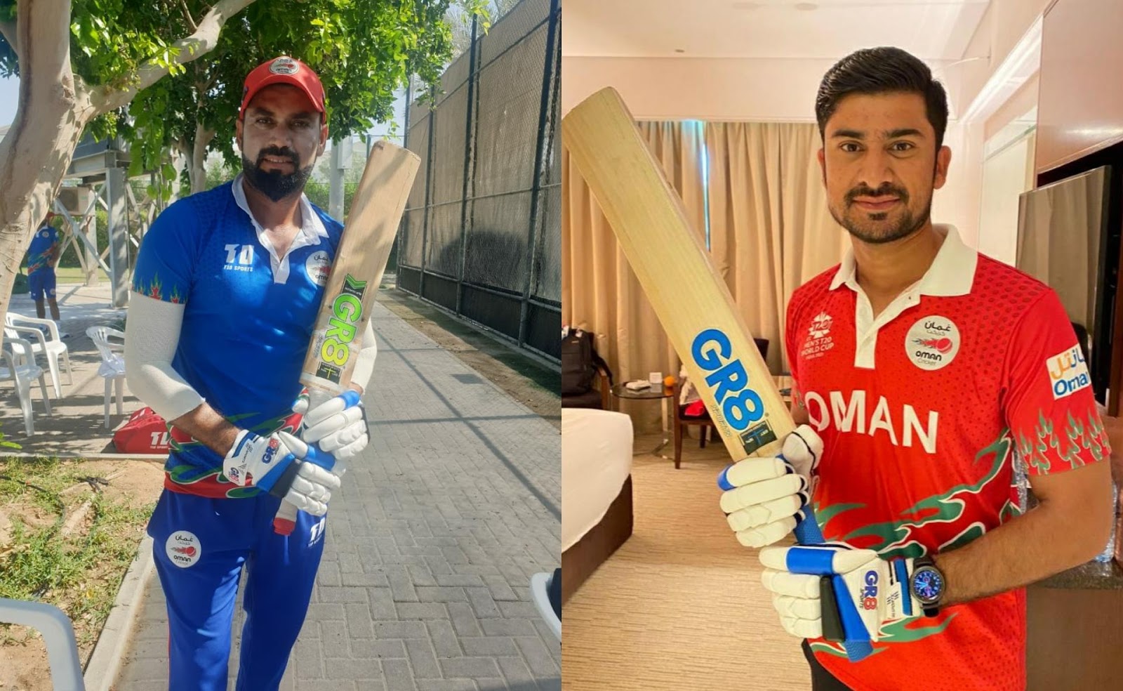 Two Omani players, Naseem Khushi and Bilal Khan, who are using the GR8 Sports kit in their World Cup matches, were photographed displaying these bats as final preparations for the World Cup were underway.