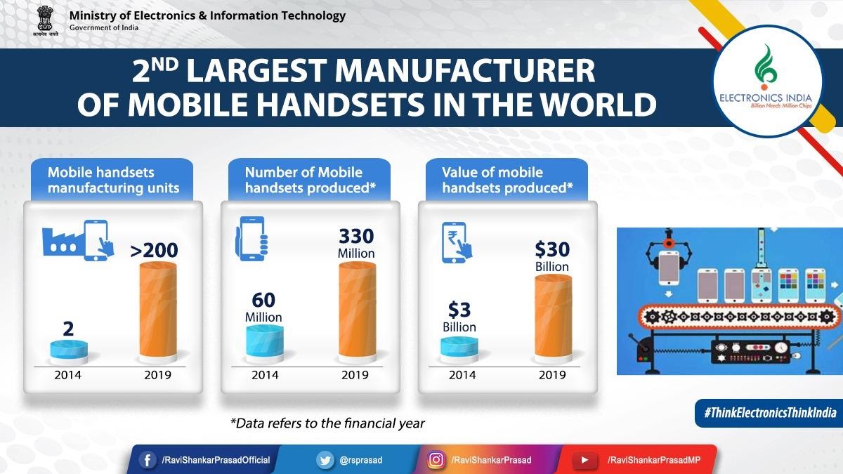 TWITTER: India has emerged as the 2nd largest mobile phone manufacturer in the world. In the last 5 years, more than 200 Mobile Phone Manufacturing units have been set up.
