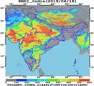 As per the latest data recorded on June 18 using satellite-based drought monitoring and early warning system, the following map was created to indicate drought like conditions in India.