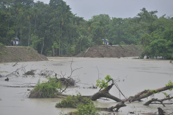 Flood water has breached an embankment in Barpeta district. (Surajit Sharma)