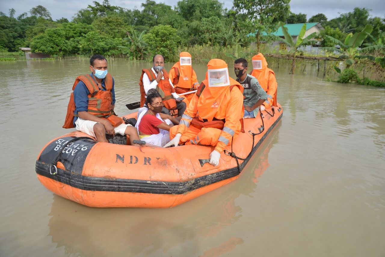 NDRF personnel rescuing villagers in flood in Barpeta in Assam. (NDRF)
