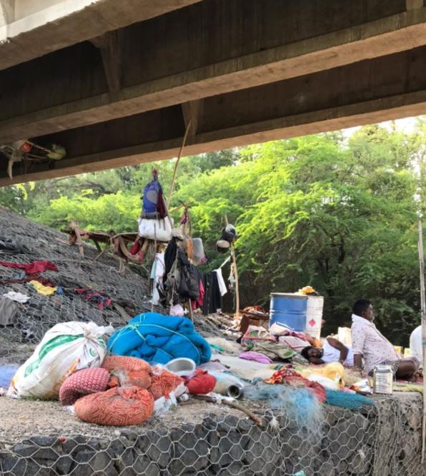 The second man says grimly, ‘People from above often throw stones. But we live right under the bridge so we don’t often get hit.’