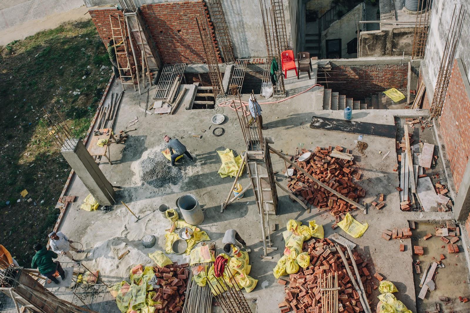 Workers construct a building at Ghaffar Manzil in New Delhi (Monis Khan)