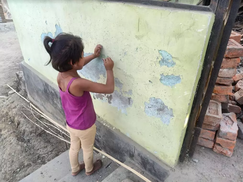 Rupani Hazarika (38) a widow with three children, was one of the victims of the fire since her home was just across the street from the oil well number five, where the fire began. Though she and her children escaped, their home was left in ruins as a result of the fire. “We are freezing in the winter and feel extremely hot in the summer. I want my son and daughter to go to school, but I can't afford it right now because we're rebuilding our house on our own," said Hazarika. She used to be a tailor, but her sewing machine was destroyed, and she has been struggling to earn a livelihood since. She dreams that her children will study in a good school one day. Most villagers in this village want their children to study but they can't afford it anymore.