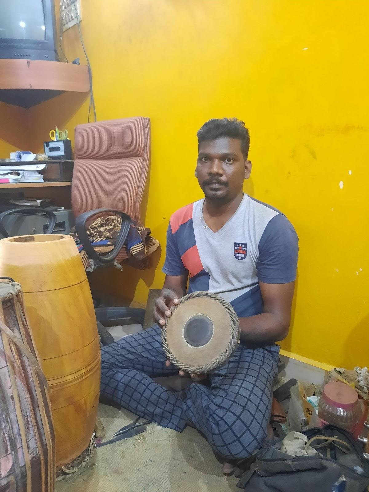 An engineer by day and mridangam maker by evening, Edwin has expanded the business by making many customers overseas. He and his father create up to eight fresh mridangams each month, apart from servicing and tuning several others.