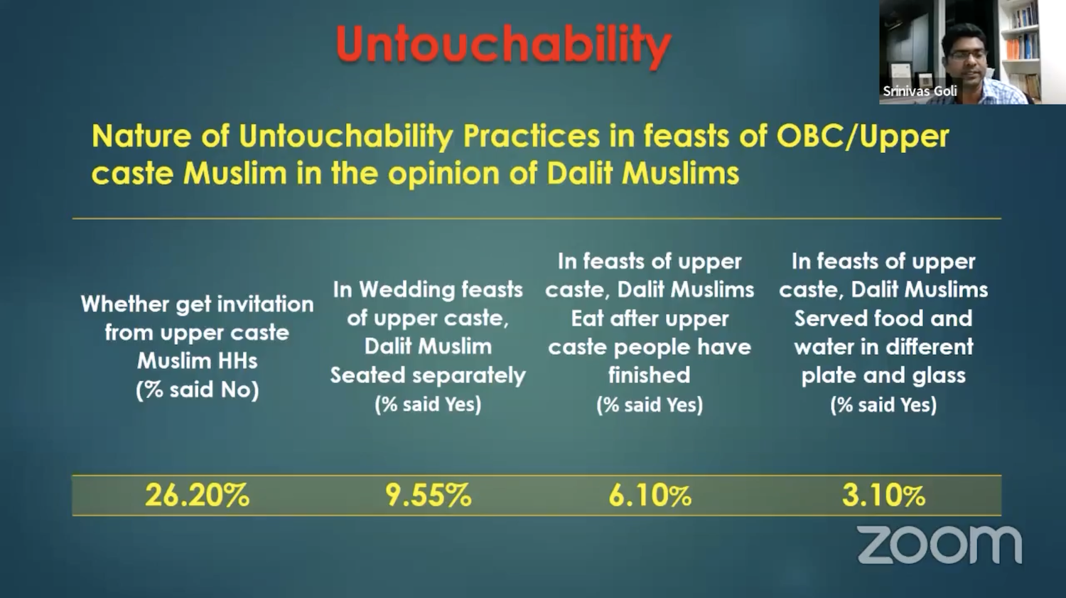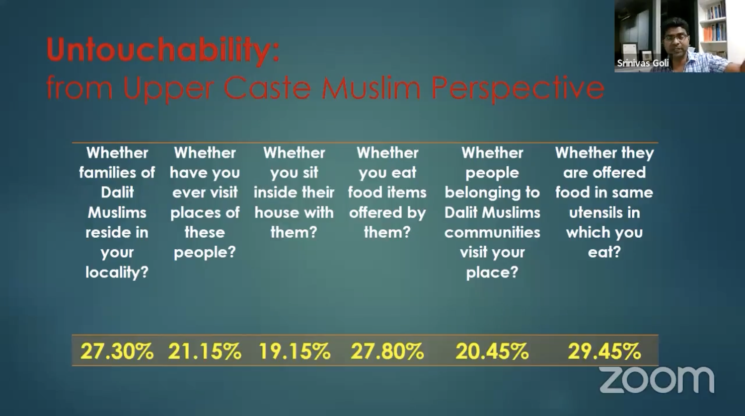 Muslims classed as Upper Caste by the researchers reported a low level of interaction with those classed as Dalit