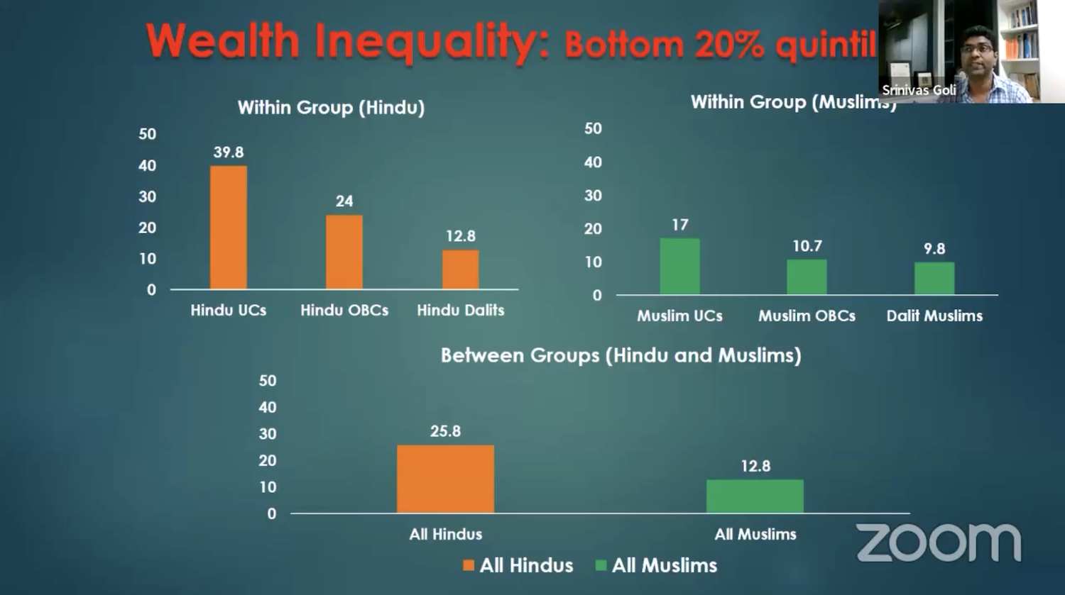 A question was posed to Srinivas Goli on the differences in wealth and land ownership between Muslims and Hindus.