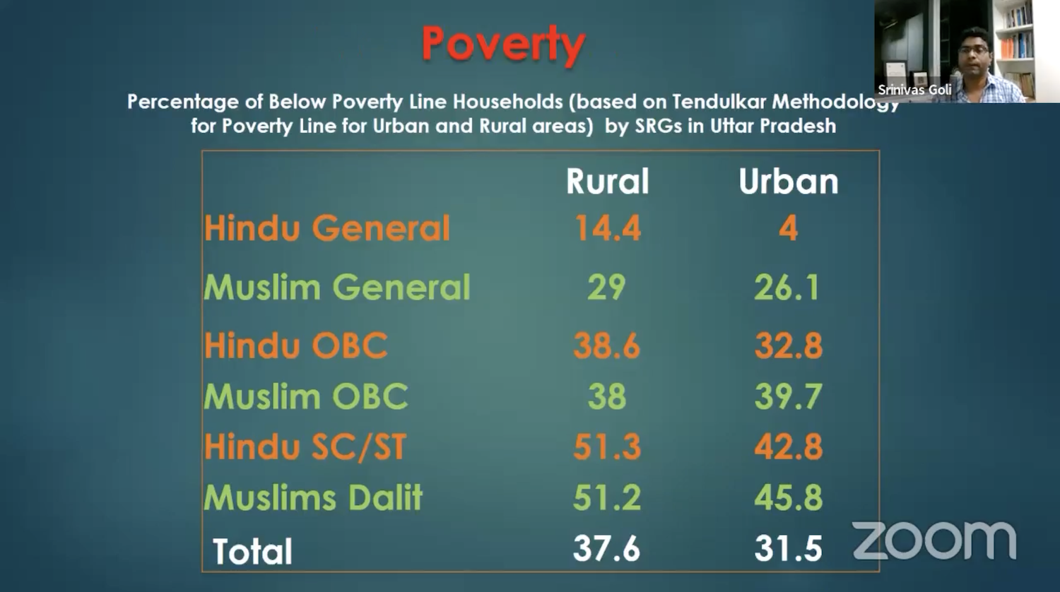The extent of poverty was near identical among Dalit Hindus and Dalit Muslims, and among OBC Hindus and OBC Muslims. Poverty was far more prevalent among Upper Caste Muslims than Upper Caste Hindus