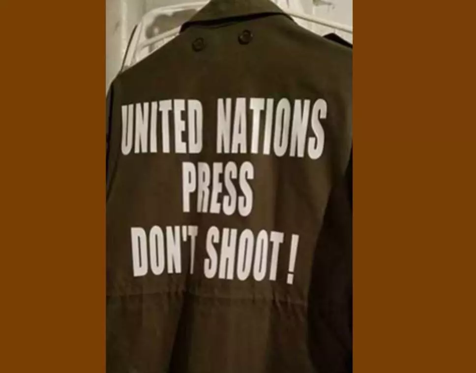 When he was in Iraq’s battle zone in Baghdad during the 1990 Gulf War, he was armed with a military flak jacket with a cautious warning inscribed on the back: “United Nations. Press. Don’t Shoot.” Perhaps it helped. Now, he says, with his tongue firmly planted in his cheek, he occasionally wears it in the mean streets of New York, a city where he has lived for over 45 years, and where a bank robber can get mugged as he flees to a get-a-way car.