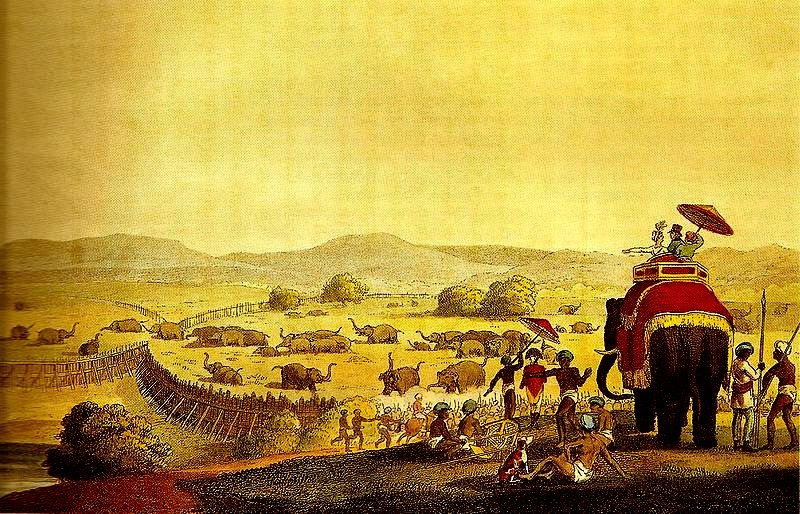 If something went horribly wrong with the wild elephant who might be a rogue, this big male elephant would help counter it in a fight. In the process the mahouts often were killed, along with the helpers who assisted in the mela shikar.