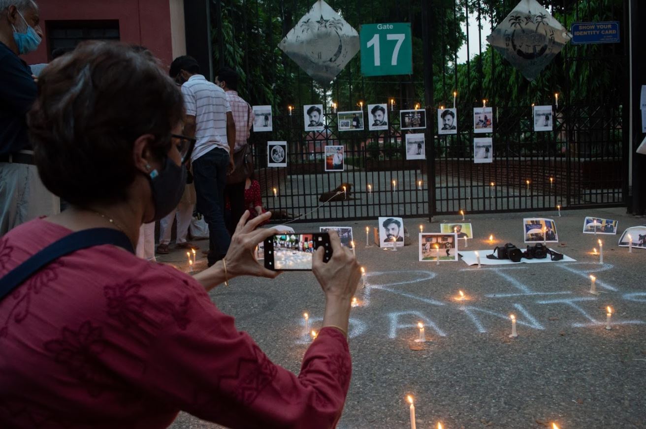 Friends, journalists, contemporaries, elders gathered at the Jamia Millia Islamia last night to light candles in memory of Danish Siddiqui, award winning photo journalist, who was killed at Kandahar, Afghanistan. The mood was sombre and contemplative as all remember Danish and the hearts he had touched through his young life as a committed and courageous photographer and reporter.