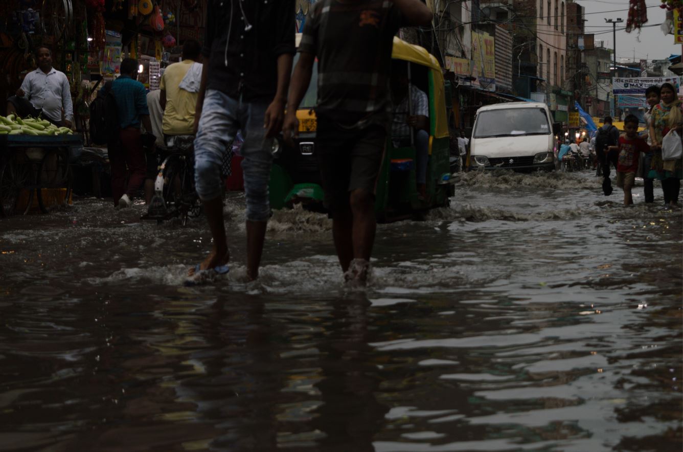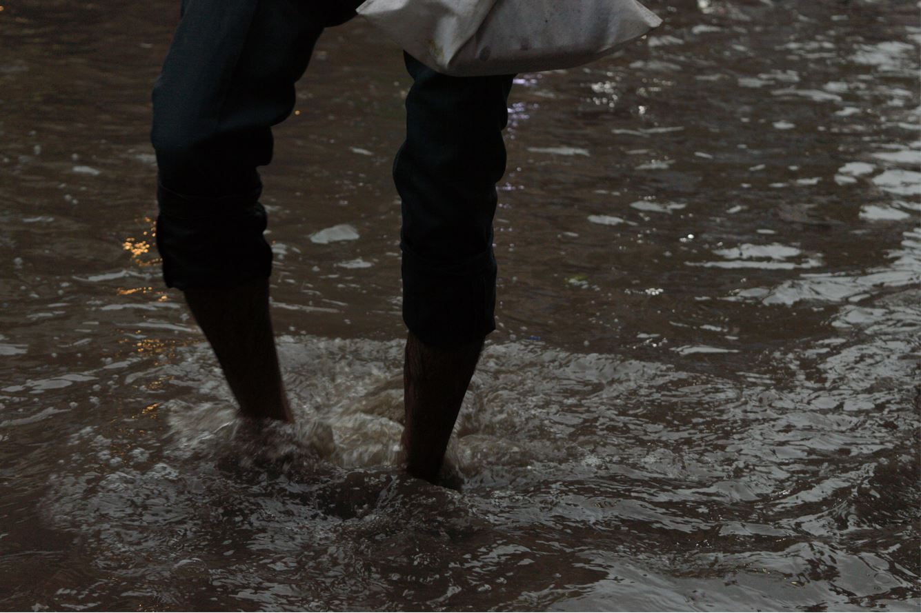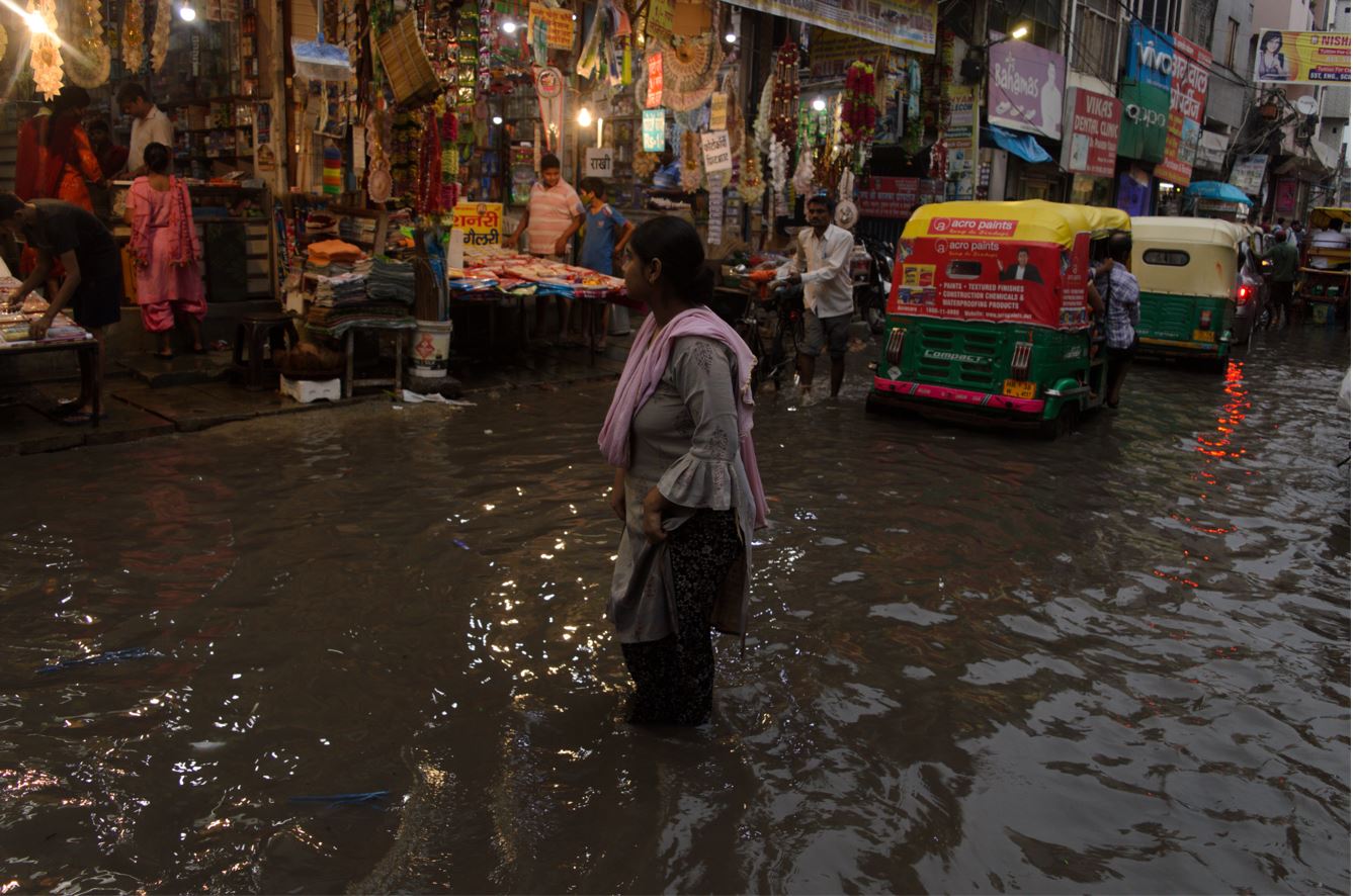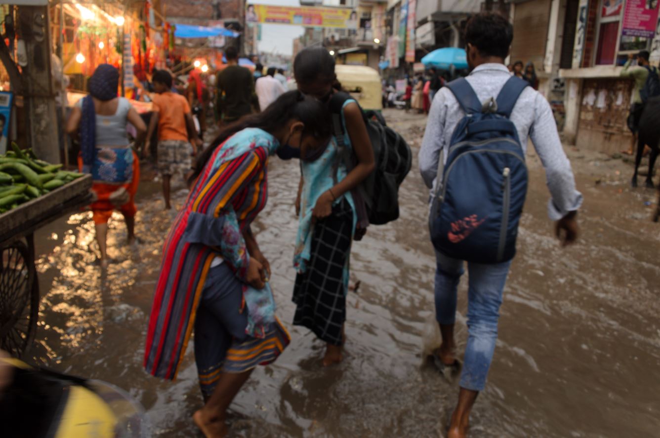 Waterlogged gullies are part of their lives, with women and children joining the others in wading through calf deep waters on a daily basis during the monsoons.