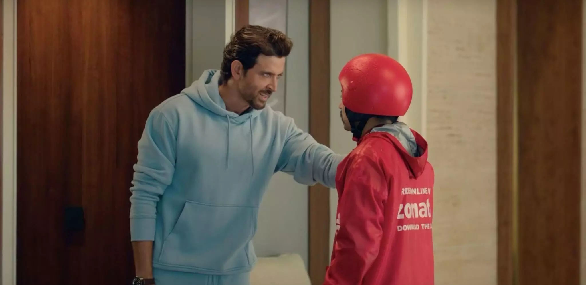The ads revolve around a worker delivering food items to Hrithik Roshan and to Katrina Kaif. Naturally, the valet is excited to see the celebrity at the door, who greet him and want to click a selfie with him, or offer him cake to eat.