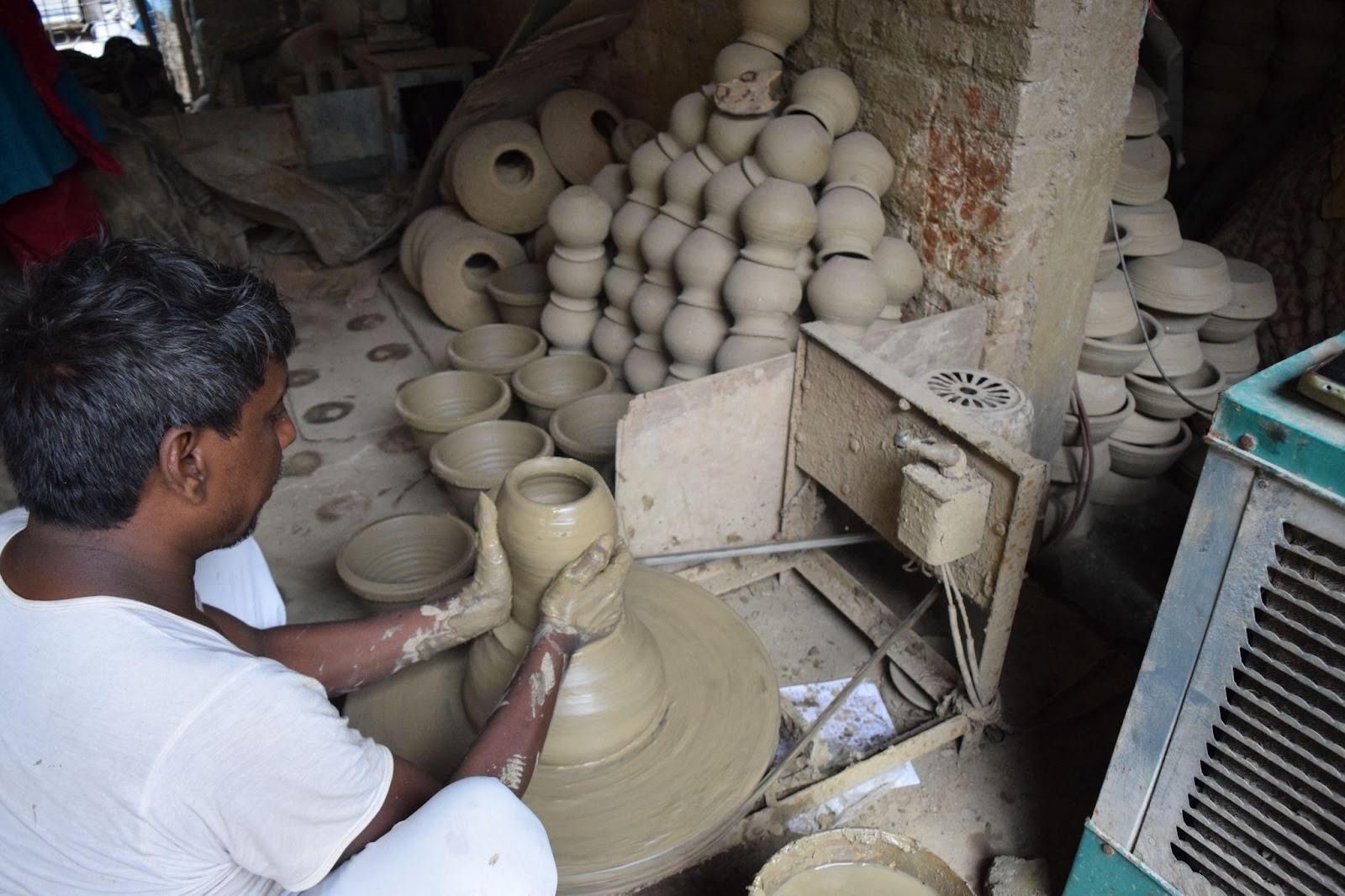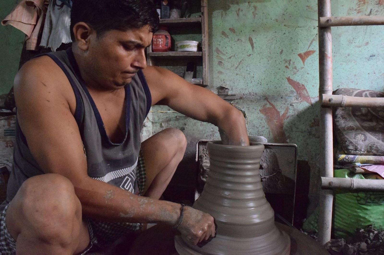 Most potters in Uttam Nagar work independently from their homes, and all their investments in making clay products are from their own pockets. Singh explains that he brings clay to make pots, statues and other clay figures from Haryana in advance.