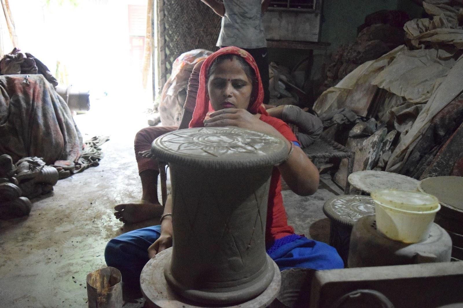 The artists anticipate similar strictness during Diwali and Dussehra. The dry market is affecting their sales, and their households as well. Pottery is a family business for these artists, in which women and children equally participate. Meanwhile the burden of managing house with minuscule financial support still rests with the women.
