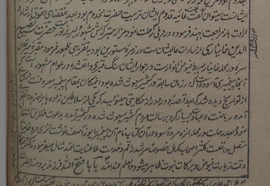 The shrine is first mentioned in Khwaja Muhammad Azam Didamari’s Waqi’at-i-Kashmir (Story of Kashmir, published in 1747), also known as the Tarikh Azami. According to Muhammed Azam Didamari, the local Sufi author, the tomb is that of a foreign prophet and prince named Yuz Asaf, or Youza Asouph in modern Kashmiri transcription.