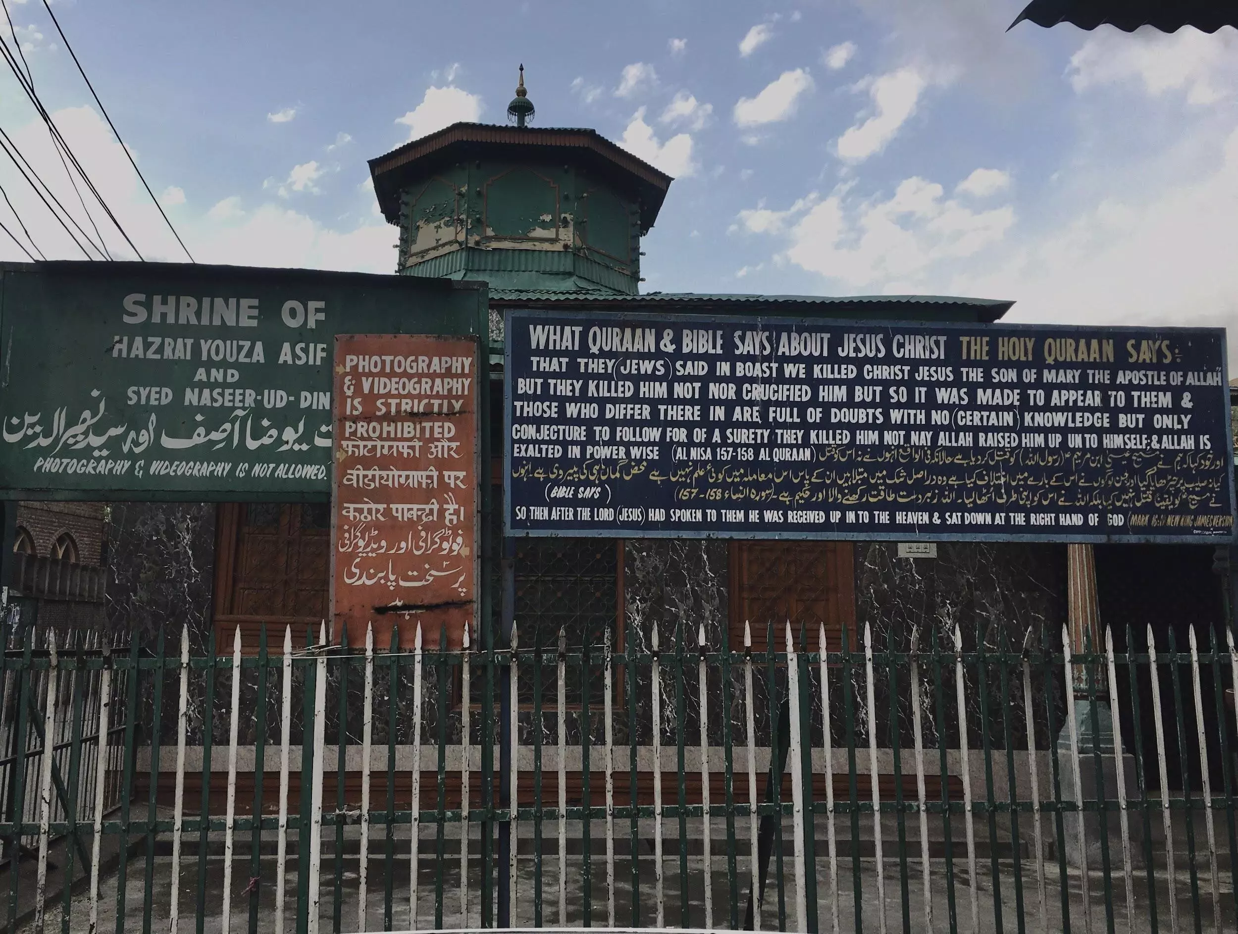 “This is the grave of a Muslim saint. It is clearly written in our holy book, the Qur’an, that Jesus was ascended up to heaven, to God. However, Qadianis and Mirzais (derogatory terms for members of the Ahmadiyya Muslim sect) who claim that this is the tomb of Jesus are false. No Muslim in the world believes Jesus is buried here or anyplace else on the planet,” said Tanveer, a local inhabitant.