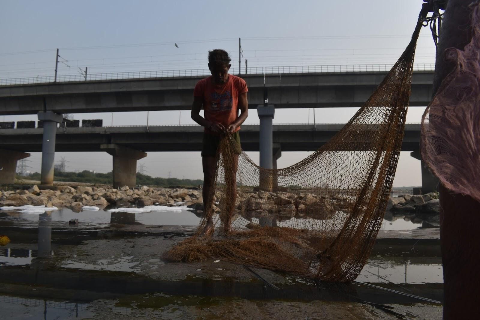A sad generational shift, Raj Kumar (24), works as a delivery boy in the evening shift at Zomato. He fishes with his father Babu Lal in the morning but says that the declining fish population has forced many to change their profession. “Only traditional old people like my father who have been fishing since they were born are still relying on the same”, he says, looking at the now polluted sacred river. Thousands of crores of rupees have been spent on various projects to clean the river; however, pollution is still on the rise, making Yamuna more poisonous day by day.