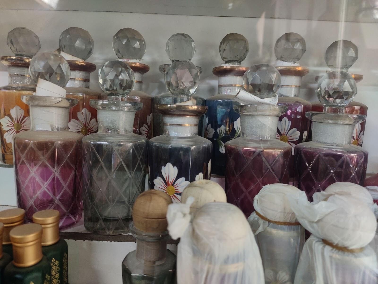 Walking through the tightly packed lanes of Chandni Chowk, an aged and sweet scented shop grabs my attention. Nestled in old Delhi’s Dariba Kalan, the famous Gulab Singh Johri Mal has been selling ittar, or attar, for more than 200 years. The cupboards and shelves in the shop are loaded with huge and colourful glass jars, containers, bottles, and decanters of perfumed or fragrant oils, and the place is always crowded with customers – such is their love for ittar!