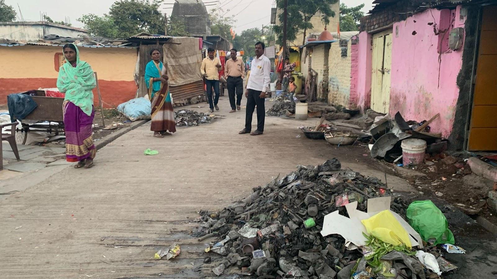 Once a nomadic community, Mang-Garudis now reside in the densely peopled Vilas Nagar area of Latur, Maharashtra. They earn a living from ragpicking, which fetches a person Rs 200–500 a day. As one enters the overcrowded locality, where the road is filled with waste taken out of the gutters and sewage water all over the place, on the right side there are a few concrete houses and on the left side a slum, both equally grubby.