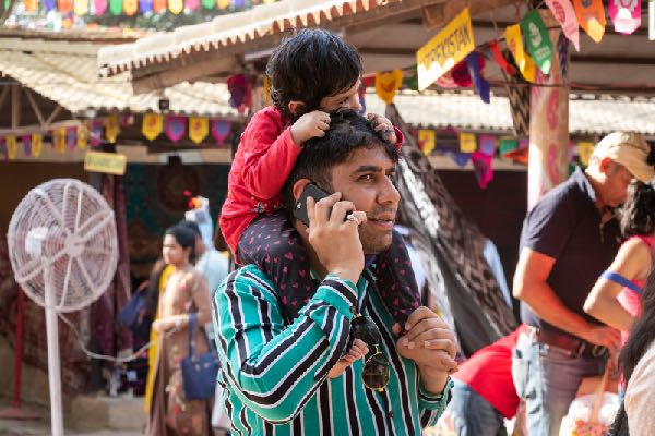 A child comforts himself over his guardian’s head during the noon hours at the mela. March 2022 was the hottest March in India since 1900 when records began
