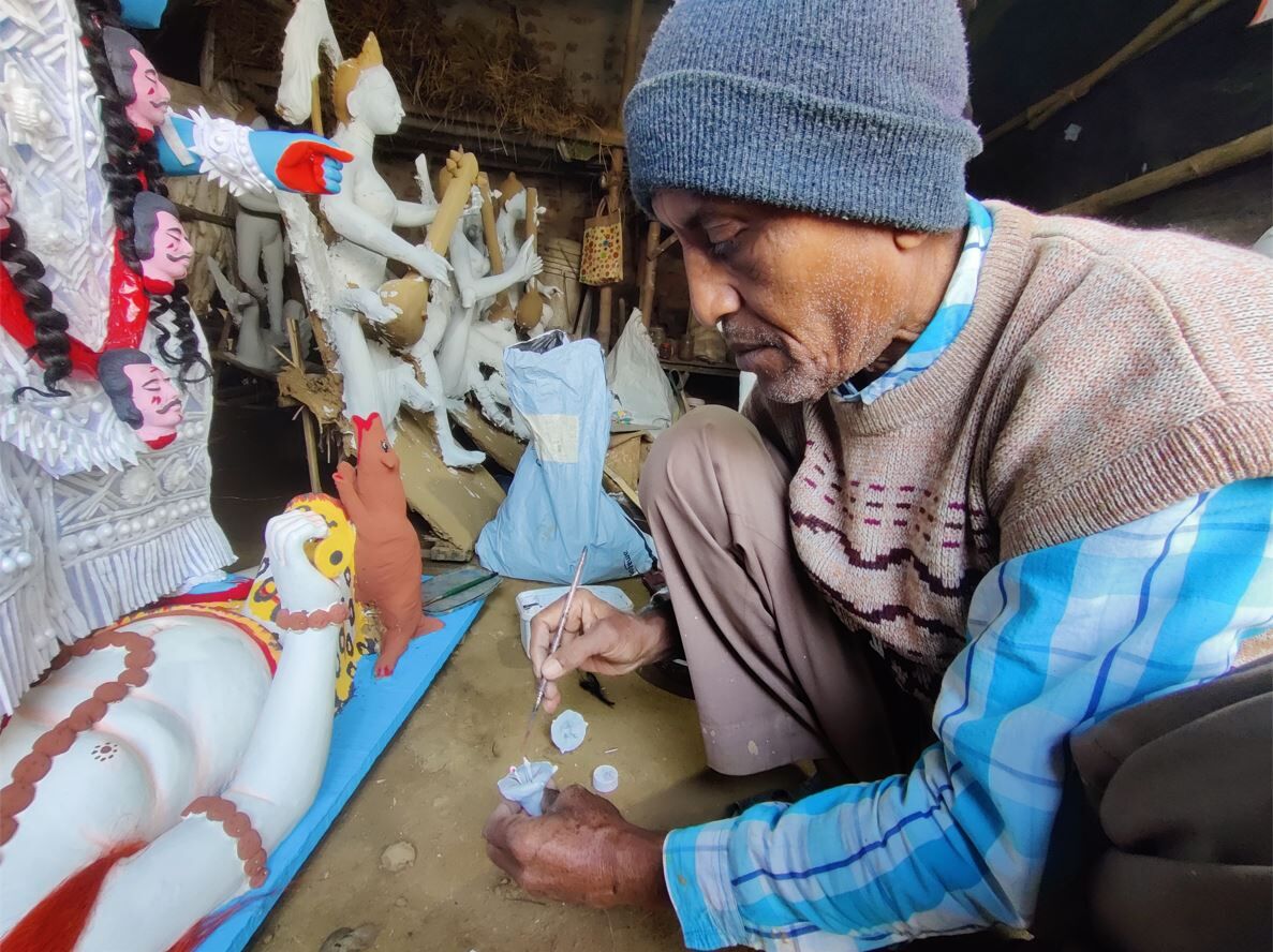 Durga Puja and other pujas are an integral part of Bengali culture, and are also the major income sources for the state’s potters. But once the pandemic hit, the Government of West Bengal paused the massive pujas gatherings. Two years down the line, the potters are left burdened with debts and are struggling to make ends meet. Around 160 potter families of the Rathtala area are still struggling.