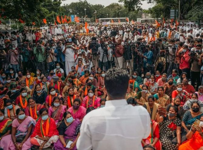 Cover Photo: TN BJP workers on strike to protest against the student's death by suicide. Photograph: Courtesy, BJP4TamilNadu on Twitter