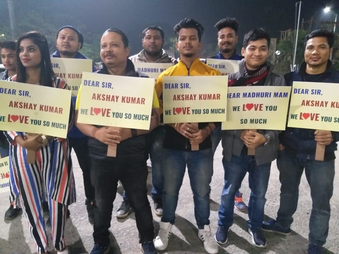 Anti-CAA protestors held placards with the message ‘Dear Sir, Akshay Kumar, we Love you so much’, ‘Dear Madhuri ma’am, we love you so much’, even as they made their protest against CAA heard.