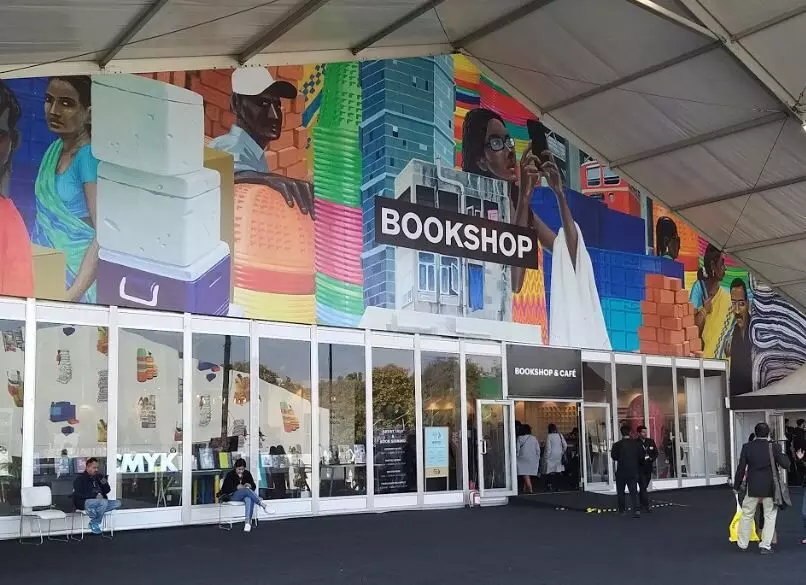 As one walks past the hustle bustle of a crowded boulevard, one approaches the entry of NSIC grounds in Okhla New Delhi that hosts this four-day art event. One can see a sprawling facade design by Artist Sam Kulavoor, celebrating the everyday life of people, adorning the outer walls of the Art Fair, with Bookshops and Cafes adding a fresh winter morning effervescence to the affair.