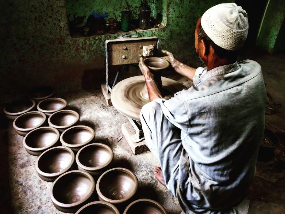 His father Ghulam Qadir is busy shaping pots on a wheel, and full of confidence says he will go on making these pots as his parents used to do.
