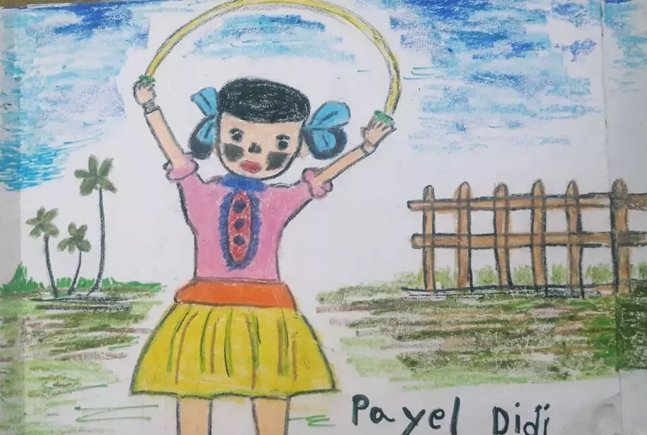 But a better effort comes from the fresh director Kumar Chowdhury, basically an actor confined to cameos and supporting roles in Bengali movie. He is making short films on his video- camera within the four walls of his home. Among them, the one that will strike anyone and everyone who watches it, is called Drawing Copy. The film is focussed on the childish drawings of a six-year-old. The drawings, done in pencil and possibly crayons, are a microcosm of any drawing book of any six-year-old boy. The camera focuses on the flipping pages of the drawing book. One is called “Family” showing two tigers and a cub sitting together each coloured differently. Another, called “The River” is a landscape quite in keeping with how we drew landscapes as children as part of our drawing homework.