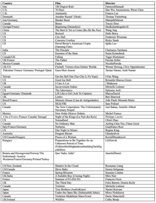 TIFF 2020 will have both physical screenings and drive-ins, as well as digital screenings, virtual red carpets, press conferences and industry talks. Its concentrated lineup lists 50 new feature films, five segments of short films, augmented with interactive talks, film cast gatherings, and question/answer sessions with cast and filmmakers.