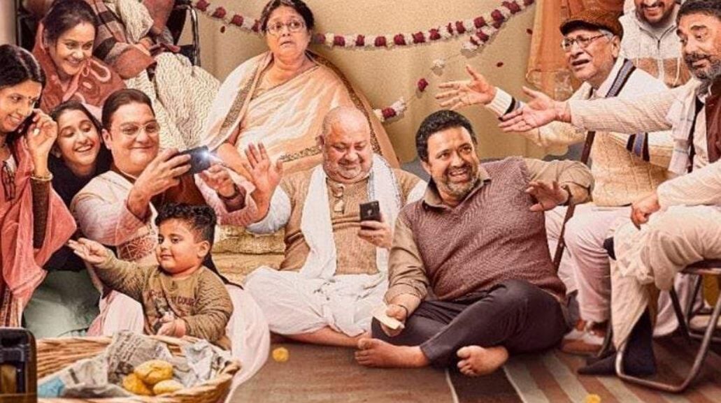 The film has rarely stepped out of the ancestral home of Ramprasad except some glimpses of the skyline and the terrace of the home. But it does not get claustrophobic, cinematically or script-wise at any time. Vineet Kumar as the quarrelsome, meddling Mama who has to poke his nose at every utterance is very good and so are the others. Rajendra Gupta as the English-speaking Tauji offers a different slice of characterisation and his make-up is so good that he is unrecognizable.