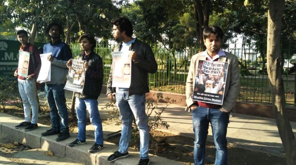 NEW DELHI: A silent protest to voice support for Muslim lives and in condemnation of religiously motivated attacks across India was held at Connaught Place, New Delhi on December 9 for three hours. Hundreds of student activists, academics, political activists, NGO workers came together for solidarity inspire of the heavy surveillance by Indian paramilitary and police officials encircling them. The heavy police and paramilitary presence was in stark contrast to the peaceful protesters.