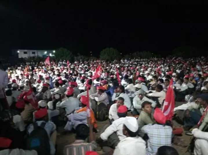 Its distinguishing feature is that thousands of peasant women are also part of the March and they will walk all the way of 200 Km to Mumbai. The entire area is replete with hundreds of red flags, red banners and red placards giving the demands of the March. Resounding slogans are being given condemning the BJP state government's “callous betrayal” of its own assurances given to the peasantry on the issues of farm loan waiver, remunerative prices, implementation of Forest Rights Act (FRA) and many others during the last two years.