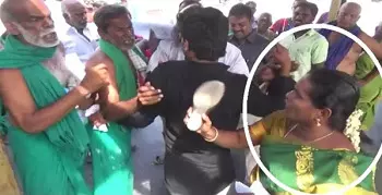 One of the farmers in the group used a Tamil cuss word, implying slut. On this she slapped Ayyakannu. The temple authorities intervened to break the scuffle. The woman was identified as Nellaiyammal, the district secretary of BJP’s women’s wing. P.Ayyakannu said she was instigated by the BJP leaders of the state to “trap me so that the march could be curtailed”. She alleged that Ayyakannu abused her.