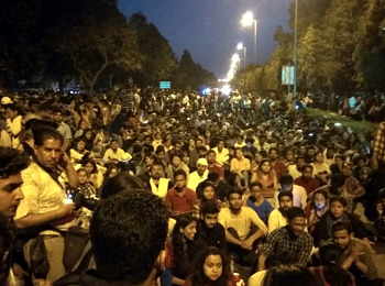 The students are staging a sti in protest at INA, demanding release of the detained students. The march was in response to the open call by the JNU Students Union and Teachers Association to protest against the removal of deans and chairpersons from the Centres ; and the ongoing sexual harassment case where the accused Professor was arrested and released immediately on bail. The girls who have been harassed by him held a press conference in Delhi recently, and made it clear to the media that Johri was a serial offender. They also said that unlike the propaganda by some of his supporters in the BJP, they were not from the Left students organisations but actually most of them were registered members of the ABVP.