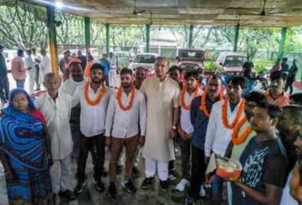 Union Minister Jayant Sinha greeted the eight with sweets and garlands, and assured them of all help.
