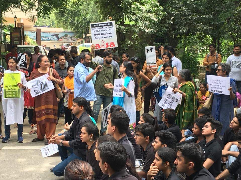 NEW DELHI: A protest demanding an enquiry into all shelter homes in Bihar and the resignation of Chief Minister Nitish Kumar was held at Bihar Bhawan in New Delhi on July 30, and was joined in by protesters across India including Patna Varanasi, Gorakhpur, Allahabad, Lucknow, Dehradun, Kullu, Jaipur, Ranchi, Bhopal, Chennai, and various other cities of Bihar on the same date.