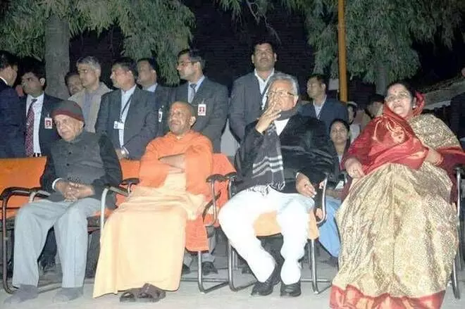 b) He flew down to Gorakhpur for a sound-and-light show, from Rajasthan where he was busy campaigning