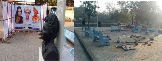 The students protested last night and continued on Monday demanding that the photographs nd portraits be restored. ASA asked for the arrest of VC Apparao for violation of the SC/ST Prevention of Atrocitires Act and his removal from the post as “his presence has become highly detrimental for the interests of Dalit and backward classes” in the university.
