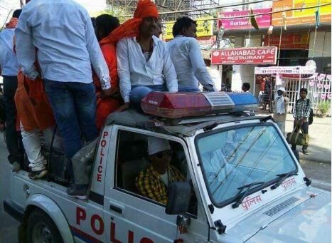 BJP workers being ferried in a police vehicle