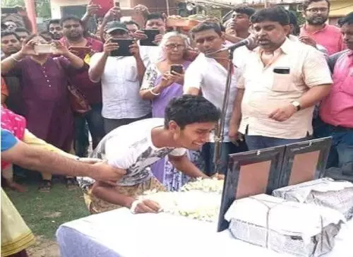Third-year history honours student Dipankar Das was cycling back home to his village Budhakhali in Kakdwip, 24 South Parganas district after midnight on May 14, 2018. As his house came into view, he saw that it was on fire. When he entered inside, he discovered that his parents Usha (41) and Debu Das (50), both workers of the Communist Party of India (Marxist) had burned to death.