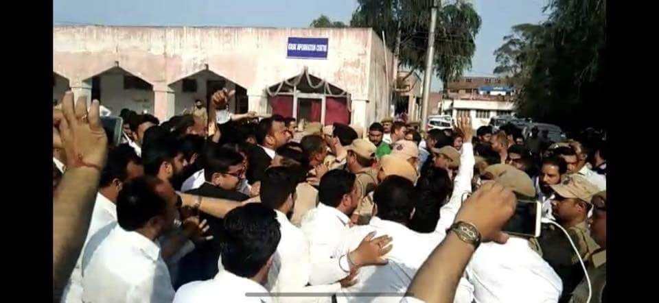 A group of lawyers had yesterday staged protests outside a Kathua court when the sleuths of the crime branch of J&K Police reached there along with lawyers to file their charge-sheet against the accused, which include a former bureaucrat and two special police officers.
